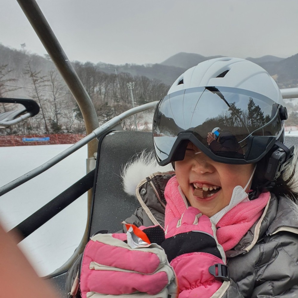 리프트에서 떨어진 당을 충전하고~ 우리는 한발스키도 연습했어요